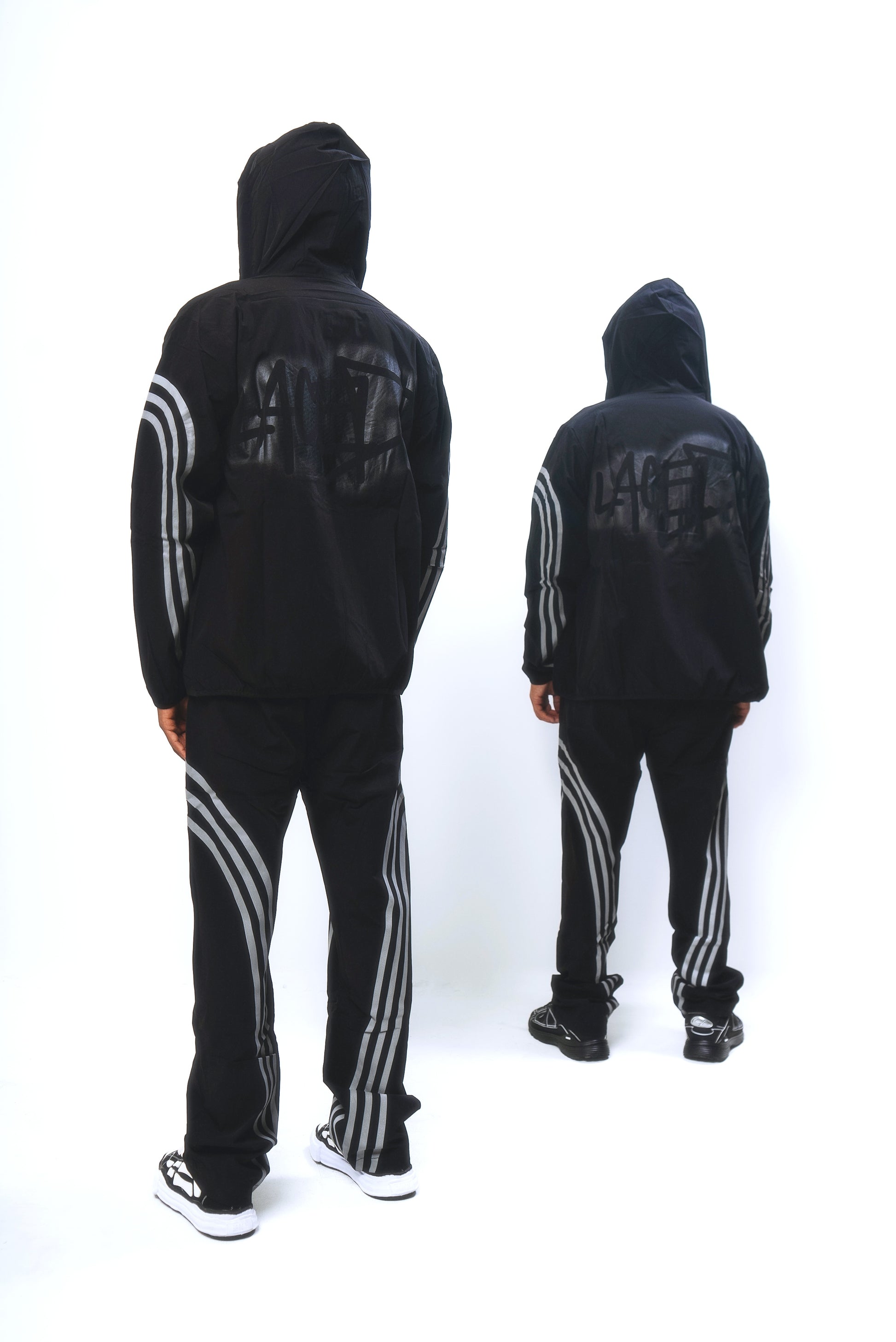 Description: These lightweight nylon pants feature an extra wide, baggy straight leg fit. They feature 2 side pockets, 3M Striped panels and an elastic waistband with drawcord for an adjustable fit. These pants are unlined, making them super compact for traveling and versatile for different climates and weather needs.
